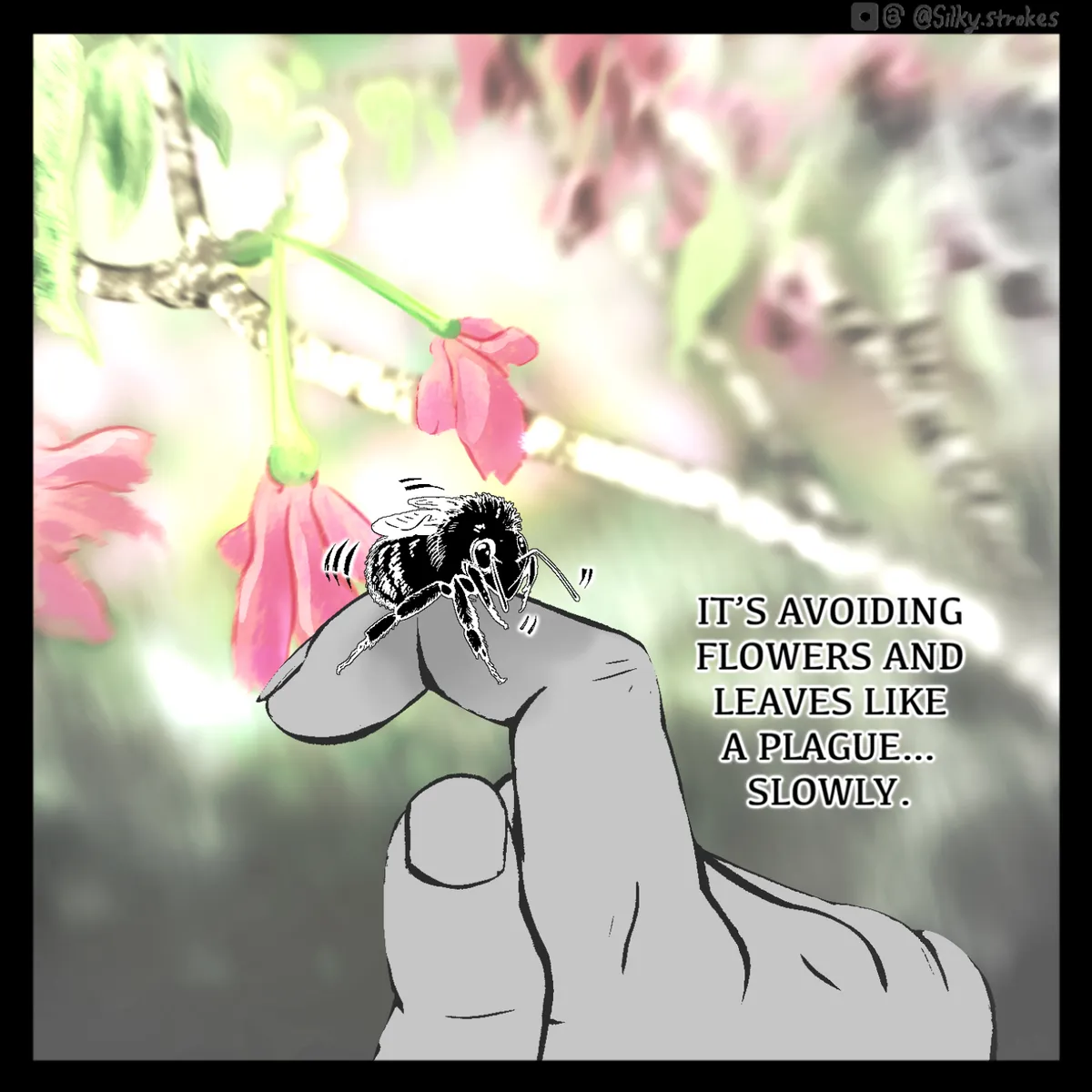 Another 100-ish hours poured in. I enjoyed my time with the two bumblebees that inspired this. It was a matter of life or death for ectotherms, but for warm-blooded humans like me, contact zones between species like these carried something far too heavy to ignore.